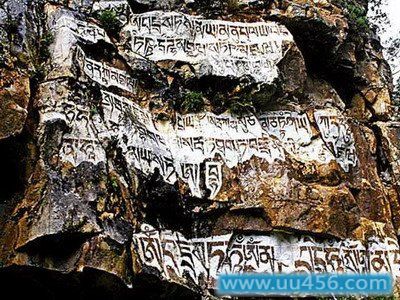 勒巴沟岩画位于玉树州境内的通天河畔。沿着通天河畔的一条山径来到这里,会使你同时产生两种截然不同的情绪体验:通天河的喧嚣、壮阔和勒巴沟岩画的静谧、神圣。勒巴沟岩画面江而凿,处于勒巴沟沟口。勒巴沟内蓊郁的草木,也难以掩盖住由岩画和不可胜数、遍布沟内的嘛呢石刻散发出来的神秘气氛。从沟口唐末释迦像到现今打制的嘛尼石,你可以看到整个藏族宗教石刻的历史。