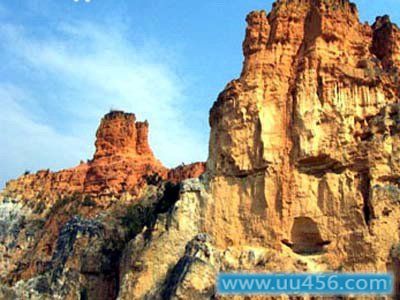 彩色沙林位于陆良县城东南18公里的玉峰山下,已命名的108个景点分布在“Y”字型峡谷中,总面积180公顷。  该沙