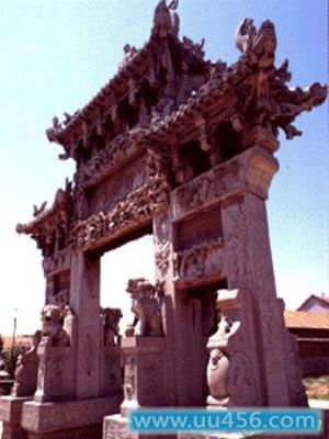 庵上石坊于安丘市庵上村,建于1829年(清道光九年),是庵上村马若拙为其兄马若愚之妻王氏所立的节孝牌坊。相传由江苏扬州雕刻艺人李克勤、李克俭兄弟二人设计,率徒弟8名,历时13年雕筑而成。石坊为顶、身、座三部分,高15米,宽9.35米,用多块石灰岩垒加而成,接缝严密,浑然一体,宏伟壮观。正面刻“圣旨”二字,中部横批刻“节动开褒”四字,两侧刻“旌表愚童马若愚妻王氏节孝坊”字样,横批下两侧刻有“大清道光己丑岁建”八字,背面横批为“贞顺流芳”,其它刻字与正面相同。坊上题字均为翰林单兰亭所书,字体端庄幽雅。石坊雕刻内容丰富,人物、动物、植物、器物、山河等,无所不有。手法综合运用立雕、透雕、浮雕、高肉浮雕和线刻技巧,精妙绝伦。主楼下雕刻八仙人物形象,栩栩如生,有呼之欲出的效果。次楼匾下的四组谐音吉祥祈福动植物图像如:六(鹿)合(鹤)同春、太师(狮)少保、挂印封(蜂)侯(猴)、父子拜相(象)所雕刻的动物活龙活现。其中“挂印封候”一组尤为精彩,运用难度大的镂空雕刻手法,刻出一对玲珑剔透的鸟笼悬于枝头之上,笼中刻画眉鸟能迎风鸣叫,鸟笼能随风摆动,又雕猴子去捅黄蜂窝的调皮活泼之状,极富情趣,石牌坊的最高顶部,雕有麒麟昂首负宝鼎状,给人以凌空欲飞的动感,与岿然岸立的坚实坊柱、坊座形成强烈的对比。石坊设置力度合理,极富情趣。石坊雕刻繁简得当,主次分明,民谚“天下无二坊”是对庵上石坊的赞誉。
