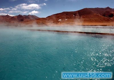 在世界屋脊上,有一座给高原古城拉萨带来光明与希望的新兴城镇,这就是羊八井。它位于青藏公路和中国通往尼泊尔公路的交叉点上,是西藏第一个地热开发试验区,已建有热电站、地热温室和温泉浴室。它所处的羌塘草原是个高寒地区,一年有八、九个月冰封土冻。然而方圆40平方公里的热田,却绿草如茵,青稞垛金灿灿,温泉的雾气腾腾。要是往滚滚向上冒的温泉边放上几只鸡蛋,三五分钟便可煮熟。