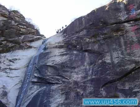 京都第一瀑位于北京密云县石城乡柳棵峪内,黑龙潭北4公里,是由云蒙山泉水汇集而成,瀑布落差62.5米,坡度85度。