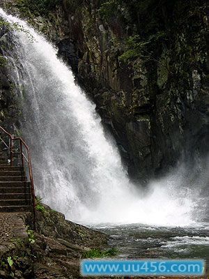 蛟龙瀑布嘉义县梅山乡的太和村塔山群峰的北侧,在可见一道高达1600米的悬崖绝壁,崖上云雾绕缭,迷蒙不见崖顶,从云端突泻出一道瀑布,跌宕四层,宽近百米,沿着峭壁,由一道分成四五道再合成二道,再分成七八道……最后直泻500米至瀑底深渊中,水花飞溅,气势磅礴,声若雷鸣,地动山摇,数百米之内水珠迸溅若雨,人不可近,若在山崖对面的圣观音峰远眺,仿佛云端悬下素练,又似白玉巨柱擎天,或若白龙冲天入云,真是旷世奇观!