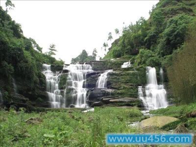 后经瀑布是目前雨城区境内所发现的最大瀑布。它位于雨城区严桥镇,距城区约45公里,目前到后经8公里林区公路路况较差,越野车可直达。沿途溪水潺潺,古木参天,小路掩映于翠竹之中,农舍散布其中。后经瀑布气势恢宏,高60米、宽50米、重叠三梯的瀑布好似天上银河直泻而下,尉为壮观。游人到此,可垂钓、品茗、观瀑,尽享山村农家风味。