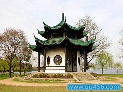 先月亭在东湖西岸南端伸向湖中的长堤上。取宋苏麟“近水楼台先得月”诗句命名。钢筋水泥仿木石结构,高约10米,底径13.6米,八角重檐攒尖顶,红柱碧瓦,周置栏杆,羽翼舒展,健丽夺目,立于高0.9米平台上。三面环水,疏柳缀拂。每当皓月升空,清光熠熠,银波粼粼,上下交辉,天水相连,置身于此,如临广寒宫殿,分外迷人。