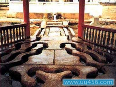 汤泉水温高达62℃~68℃,富含氟、硫等14种对人体有益的微量元素及矿物质,具有很高的医疗保健作用,被称为"京东第一泉"。从唐代开始,这里就是皇家洗浴之地。唐太宗李世民曾于此地洗浴疗疾,赐建"福泉寺",设立"福泉公馆"。辽国的萧太后冬日出巡狩猎经常到此,并修建了"梳妆楼"。明武宗行猎驻扎这里,建"观音殿"赐名"福泉庵"。明朝蓟镇总兵戚继光在此修建"流杯亭"和温泉总池,并立"六棱石幢"刻记当时汤泉胜景。流杯亭内地面凿有九曲石槽,泉水沿槽缓缓流动,如将酒杯置入槽内,杯随水转,很快就能将酒温热,故此亭又叫"转杯亭",是文人墨客把酒临风、吟诗诵赋的好场所。清朝定都北京后,这里是满清王朝入关后发现的第一个温泉,顺治、康熙两帝都对汤泉进行了开发,留下了许多建筑遗产和美妙传说。