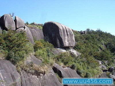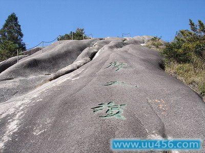 以石景为最,奇石荟萃,妙趣天成.主峰海拔921米,600米以上有一片“石海”,簇拥着石海覆舟、摇动岩、仙人碇步、蘑