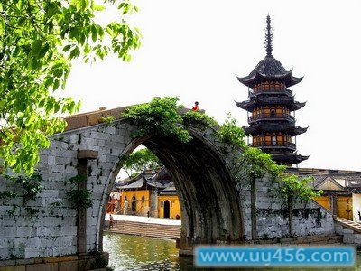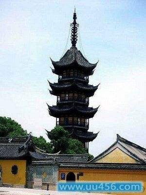 在苏州城西南、太湖之滨的吴江市震泽镇东,是一座历史悠久、建筑雄伟的古塔。据《吴江县志》记载,慈云禅寺和塔初建于孙吴赤乌年间(238-249年)。慈云寺原名广济寺,明天顺时(1457—1464)改为慈云寺,塔因守得名;慈云寺塔为该寺现存唯一的一座建筑物。从现存塔的建筑来看,除塔身下三层部分构件为宋代形制外,其他均明代建筑形式。慈云寺塔为楼阁式塔,平面六角形,砖身外木檐塔内由回廊、塔壁、塔心组成。塔高5层,塔壁外有平座、腰檐,每层二面辟壶,上下门相错而开。塔内第五层中心立楠本刹顶柱直至塔刹,塔刹铁制,由覆钵、仰莲、相轮、宝盖、宝珠、圆光和铜质宝瓶组成。仰莲上铸有“吴江县七都十一日信人级坤,同妻杨氏,长男缨应福女观秀,喜舍。……万历五年十月吉旦立”等字,由此可见,此塔塔刹亦为明代遗物。塔外观翼角檐,玲玫挺秀,塔下有禹迹桥,塔桥相映,别有奇趣。登塔可观赏震泽风光。