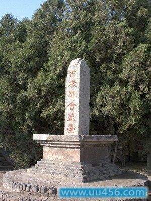 据《史记·廉颇蔺相如列传》记载,秦昭襄王时(公元前282一公元前280年),秦国三次发兵攻赵,赵国失利而不屈服。秦为征服赵,又开始政治与外交上的斗争。公元前279年,秦昭襄王派人告诉赵惠文王,为使两国和好,双方可在渑池会盟。陪同赵王前往的是赵国上大夫蔺相如。秦王与赵王会饮时,胁迫赵王鼓瑟,并令史官记入秦史,使赵王感到无比难堪。这时,蔺相如正气凛然地强请秦王击缶,亦令赵国史官记人赵史。秦国官员不服,胁令赵国割15城给秦王祝寿,蔺相如也迫请秦国割都城咸阳给赵王祝寿。如此针锋相对,舌枪唇剑,直到宴会终了,秦王也未能捞到丝毫便宜,只得与赵王言归于好。为表示偃旗息鼓,停止战争,双方士兵捧土埋藏兵器以示友好,遂成会盟高台。