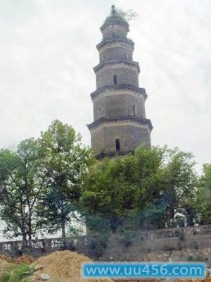 天然塔在宜昌市南部长江北岸。相传为晋代郭璞始建,清乾隆五十七年(1792年)重修。砖石叠砌,八棱七层,高约42米,层层出檐,其下皆有斗拱装饰。塔座八角,有石雕八大金刚负塔,形象生动。底层塔门西向大江,石额刻“天然塔”三字,边框饰二龙戏珠及云纹图案;门楹刻:“玉柱耸江干,巍镇荆门十二;文峰凌汉表,雄当蜀道三千。”塔内有145级石梯盘旋至顶。登临塔顶,俯瞰宜昌港,舳舻相接,帆桅如林;对江五龙山,五峰连峙,苍翠欲滴,状若五龙蜿蜒临江。每当朝阳初起时,塔光山影倒映江面,宛如一条巨型钢鞭,压在五龙之上,因而又有“鞭打五龙”之称。