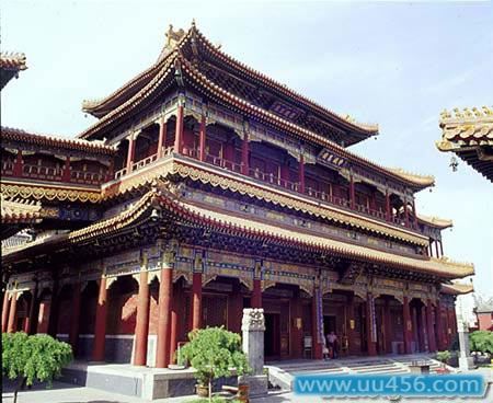 雍和宫初建于清康熙三十三年(1694年),是北京地区规模最大、保存最完好的喇嘛教黄教寺院,曾是雍正继位前的府邸。雍正三年(1725年),赐名"雍和"。整个寺庙坐北朝南,由南往北,依次为牌楼院、昭泰门、天王殿、雍和宫殿、永佑殿、法轮殿、万福阁等建筑。法轮殿内的五百罗汉山是用紫檀木雕成,宽3米多,高约5米,厚30厘米。五百罗汉是由金、银、铜、铁、锡五种金属制成,是雍和宫的"三绝"之一。万佛阁供奉万佛阁供奉的木雕巨佛"迈达拉佛"高18米,加上埋在地下的8米,共有26米高。也是雍和宫"三绝"之一,檀 木大佛已于1990年被载入《吉尼斯世界纪录大全 。雍和宫还保存有其它大量的佛教文物和资料、图片。各殿内供有众多的佛像、唐喀及大量珍贵文物。