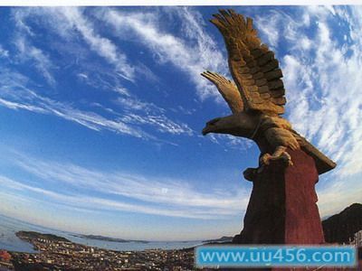 烽山公园,位于县城东部,离码头三公里处。公园中烽山为长岛县城的最高点,因为明代抗倭名将戚继光为防海上倭寇入侵,在这里建了峰火台,故此得名。现在来岛的游人一般叫它鹰山,因为山顶建有一巨形鹰雕,是长岛的象征,遥遥望去,栩栩如生,展翅欲飞,象征改革时代腾飞的长岛。这里还是观黄海日出的壮观及渤海日落的绚丽的最佳所在。
