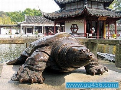 在西园中与罗汉堂一样吸引游客的,是放生池中的大鼋。放生池为一蝌蚪状大池,“头部”在南,“尾部”在北,并折向东南,面积相当宽大。池内鱼鳖之类极多,大都是佛教信徒所放生。其中五色鲤鱼,可与杭州玉泉媲美。池中有大鼋,是明代所蓄老鼋繁衍的后代,寿命已历三百余年,炎热天气,才出水一现。