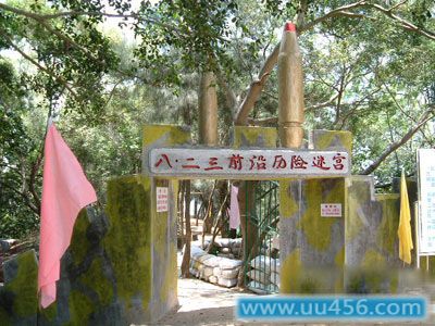 如今,战地观光园投资十几万元,对坑道进行重新布置。坑道两侧的石壁上绘画一系列表现“八·二三”炮战的壁画,分为;波涛汹涌的海面,百姓进入地道,战前准备,两军激战以及政治宣传5个场景。在第二个场景,地面铺设摇晃板,让游客体验炮击时地动山摇的感觉。不同的场景配以不同的音响,加上缭绕的烟雾和四面扫射的激光,声、色、情并茂,更富有刺激性。