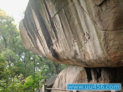 “钓隐亭”旁、“迎仙楼”前面有一高十六丈的巨石,光洁如“玉笏”,挺立天际,威武庄严,傲视云天,成为金榜山的标志。