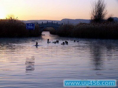 在景区的中心,有一处“处女泉”常年水温保持在29—30摄氏度之间。因此,即使在冬季,在冰冷的河面上和芦苇沼泽之间形成了一条暖流带,各种水禽集中于此活动觅食。植物群落的多样性、地热以及大量的水生生物都为珍稀水禽提供了理想的越冬和栖息场所。1995年春经专家考察发现,这里有国家1级保护鸟类丹顶鹤在此越冬,这是我国目前发现的丹顶鹤越冬地得最西端,在我省属首次发现。其他的国家1级保护鸟类还有黑鹳、白鹳、大鸨;国家2级保护鸟类百琵鹭、大天鹅、鸳鸯、灰鹤等。