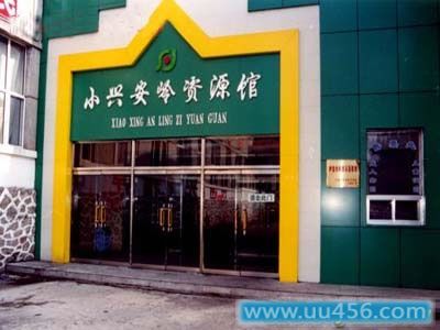 小兴安岭资源馆座落在伊春河畔,建于1987年,建筑面积4,063平方米,展厅前当年党和国家领导人刘少奇、邓小平、杨