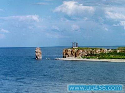 成吉思汗拴马桩高20余米,立于呼伦湖西岸。