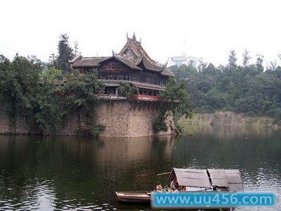 王爷庙依山临水,独踞形胜,既是建筑佳品,又是风景胜地。庙中保存完好的戏台,是四川已不鑫见的清代川剧舞台。凭栏眺望,河中怪石突兀,被称作石龙过江;对岸绿树掩映,桃花庵若隐若现,石板古道。蜿蜒岸边,琉璃亭,神道碑分立道旁。石崖上刻有“唤鱼池”三个大籽,相传苏东坡笔迹。庙东石壁,镌有冯玉祥手书“还我河山”四字,更为王爷庙添景增色。前人曾题咏道:“天生峡口险尤奇”、“王爷庙里好题诗”。现王爷庙为自贡市区著名的临江茶楼,每逢春节、元宵,庙内灯杆上挂满彩灯,庙内灯杆上挂满彩灯桥彩灯,庙内更是披红挂彩,灯火辉煌,游人如织。