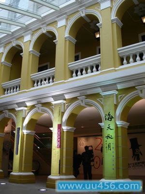 澳门博物馆座落于大炮台上,这样的选址再恰当不过了,因为葡萄牙人最早的落脚点就在那里,是城市的心脏。俯看内港的大炮台山被耶稣会士选中,他们在那里兴建了炮台、神学院及教堂,俗称"大三巴"。大炮台的兴建整整用了九年的时间,1617年动工,1626年竣工,1835年,在一次台风中,因失火毁了神学院以及大炮台的大部份建筑和教堂,只有教堂的前壁(俗称牌坊)得以幸免。随着时间的推移,围墙内的地盘变成了气象台的驻地,亦成了市民和游客常到的公园,该地点还经常用来举办户外庆祝活动,澳门音乐节的歌剧节目亦曾在那里演出。