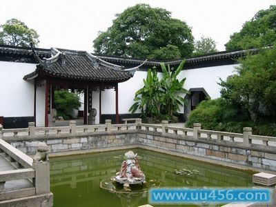 池前身是明万历年间礼部尚书著名画家董其昌饮酒咏诗之地。园林布局以池水为主,环池三面皆为曲廊亭榭,晴雨均可凭栏赏景。
