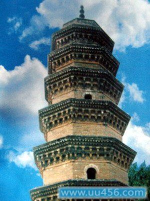 胜果寺塔位于修武县城西南隅。宋绍圣中建。砖塔七层。原有殿宇72间已废,唯塔独存。塔门东向,平面呈八角形,每边长3.1米,塔高26.15米。塔身每层高度自下而上均匀递减,宽度逐层收敛。各层檐下,均用枋木结构的斗拱装饰,玲珑壮观。塔心室为六角形,向上攀登的梯道,不仅施于塔内,还沿塔身外壁进入相邻塔门,拾级登高,直达塔顶。沿塔刹环行,可眺望全城景色。 1963年6月,公布为河南省第一批省级文物保护单位。
