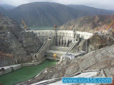该电站拦河大坝为三圆心双曲拱坝,安装有5台单机容量为40万千瓦的水轮发电机组,总装机容量200万千瓦,年平均发电量59亿千瓦时,水库总库容量为16.5 亿立方米。电站与西北330KV电网联网,主供陕、甘、宁、青三省和宁夏回族自治区,在系统内承担调峰、调频,它不仅是目前西北地区最大的水电站,而且是我国首次设计采用双排机布置的水电站,也是世界上最大的双排机水电站。电站由国家能源投资公司和西北陕、甘、宁、青投资建设,于1988年4月正式开工。1、2、3号机组分别于1997年2月18日、12月13日和1998年6月6日正式并网发电,4号机组于1999年11月投产发电。库区"人工湖"面积达32平方公里,湖水碧绿,是发展水产养殖业的理想场所。
