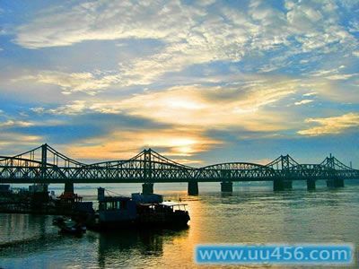 鸭绿江古称坝水,汉称为訾水,唐朝始称鸭绿江,因其水色青绿、恰如鸭头而得名。鸭绿江发源于吉林省长白山南麓,流经长白、集安、宽甸、丹东等地,向南注入黄海,全长795公里,是中朝两国的界河。鸭绿江流经丹东市约300公里。此段江面宽阔,两岸风光秀丽。