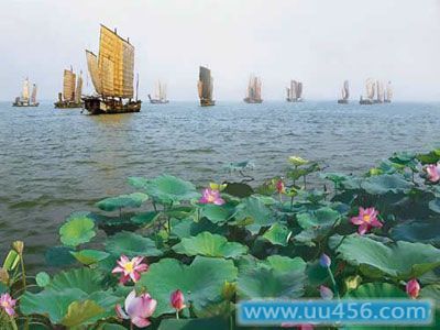 乌红天炀红泊湖,渔歌满湖鱼满船。