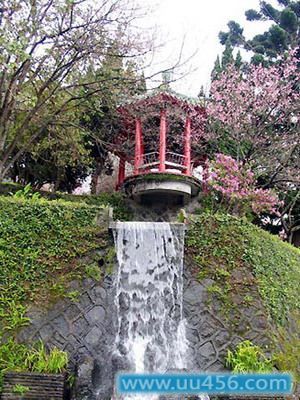 阳明山(原名草山,因盛产茅草而得名)位于台北市区的正北方,纱帽山以东,七星山之南,海拔443米,以天然的溪谷