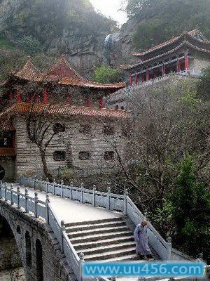 水帘禅寺位于桐柏县城西六公里的山峡中。殿堂后面,紧临一座百米峭崖,一弘山泉自崖巅倾泻下来,活像一条水晶