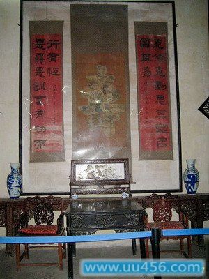 出书房,过几间房屋,便是画室。这里所有的家具上都镶嵌有闪闪发光的宝石。东墙上镶挂着明、清著名书法家的作品;西墙上则挂着一件清朝官服和一把康英奎平时练功习武时用的宝剑。