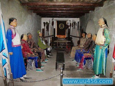 转了几个弯,便来到了饭厅。其右侧放着一张供8人进膳的方桌。桌上所有的餐具:盘、碟、碗等都是八角形的。康家迷信,相信生死由命,富贵在天,所以只要有算命先生造访,必定要用此餐具招待一番。他们相信这样做会给全家带来好运和财富。如有贵宾造访,康家主人则会依照满、汉传统举行大型的宴请,这种场合常常要用餐具108件。