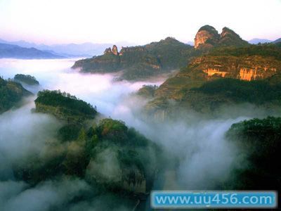 金湖这一美名早已闻名国内外。以它命名的金湖风景区位于泰宁县城西南面。东北以南溪、杰色为界,西南以金龙山--猫儿山南北向断裂为界,西北侧以南溪--寨下(崇安-石城)北东向断裂为界,东南大致乌石坑向南西至水际瀑布、甘露寺、风洞,后转向南经雄柱峰、黄石寨东侧一线为界。总体上由北东转向南北向展布。是一个受北东向和南北向断裂控制形成的“人”字形断陷盆地,面积达67.06km2,由崇安组紫红色碎屑岩组成。岩层产状北段向北西倾,南段则倾向西,倾角10-20°,近盆地中心局部过5-10°。其中还发育有一系列南北向、北西向北东向节理裂隙,在风洞--石塘一线以东以发育北西向及北东向节裂隙为主,以西则以南北向节理裂隙为主,次为北东向节理裂隙。区内沟谷深切,各种丹崖地貌景观十分发育,丹崖高悬,峰柱林立,气势雄伟,耸立于碧波粼粼的金湖岸上,是一个以水上丹霞为特色的风景区。从地域分布上,大致以风洞--石塘一线以西,以丹霞峰柱及嶂谷(一线天)最为发育,且多沿湖岸周边分布;而风洞--石塘一线以东则广泛发育岩槽洞穴,且多有寺庙建于其中。而猫儿山一带是与国家森林公园融为一体的丹霞峰、柱地貌区。据丹霞地貌景观分布及特点,将本风景区划分甘露岩、猫儿山、梅口平湖、弋口平湖四个景区。