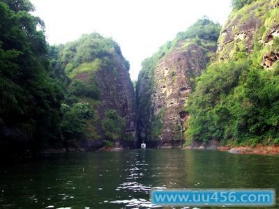 位于石辋峡谷群的核心部位,呈北北西向长条状分布,是一个沿北西向断裂形成的峡谷曲流,峡谷迂回曲折,丹崖高悬(照片2),洞穴众多,千姿百态、奇特无比、秀丽清幽,是峡谷漂流最佳地,自上码头至下码头依次主要有鲤鱼跳龙门、孔雀开屏、断石潭、千嘴岩、青龙峡等20多处景点。这些景点组成一幅幅扑溯迷离自然景观,尤有以可与长江三峡比美的乌龙峡、黄龙峡和落霞壁和千嘴岩等景观。大自然的鬼斧神工,令人神往,不仅具有极高的科研、科普价值,而且具有极高的旅游观赏价值,给人以美的享受。