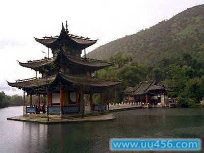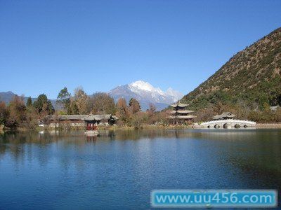 丽江黑龙潭又名玉泉公园,位于城北象山脚下,从古城四方街沿经纬纵横的玉河溯流而上,约行一公里有一处晶莹清澈的泉潭,即为中外闻名的黑龙潭。潭水从石缝间涌涌喷出,万斛清泉汇成四万平方米潭面。四周山清水秀,柳暗花明。依山傍水造型优美的古建筑点缀其间, 被誉为滇西北高原上的一块美玉。