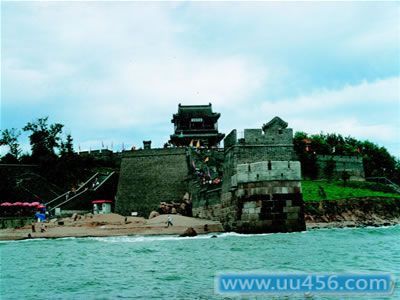 入海石城 为明万历七年(1579年)蓟镇总兵戚继光筑。据考诸现场,老龙头下伸入海中的堆积块石,有自然礁石,也有人工投入的块石,块石边缘,凿有“燕尾槽”。入海石城,伸入海中22.4延长米,宽8.3米,高9.2米,整个石城的结构为9层巨型条石砌筑,城面海墁砖,三面垛口林立,坚实粗犷,岿然屹立。