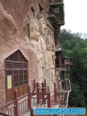 麦积山又名麦积崖,位于甘肃省天水市东南约45公里处,平均海拔在1400米至 2200米之间。因山体呈圆锥状,酷似农家的麦垛而得名。全区北跨清渭、南携嘉陵,地处我国南北自然地理分界线,又是东南、西北季风交替带,蕴有南北兼备的各种野生观赏植物和药用植物。风景名胜区东西宽20公里,南北长22公里,面积215平方公里,其中游览区136平方公里。分为麦积山、仙人崖、石门、曲江四个景区。包括18个风景小区,20处独立景点、7处古遗址、一条曲江水。