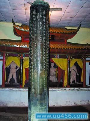 溪州铜柱位于湖南省永顺县。铜柱原立于湖南省永顺县野鸡坨下的酉水河岸,1971年因为修建凤滩水库而迁至距原址约10公里的王村花果山上,并建有保护亭对铜柱加以保护。