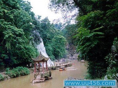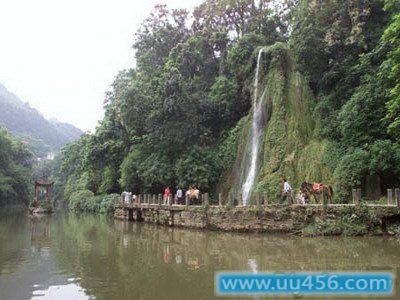 仙女洞下有阴壑伏流,据说与数十公里外的长江相通。阴河水流自岩缝涌出,从30多米高的悬岩直泻花溪,成为气势磅礴的"峭壁泉飞"。