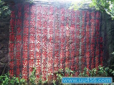 鼓山摩崖石刻位于福州东郊鼓山。山上岩壑幽奇,镌刻在岩壁上。自宋以来,名人墨客在绝顶峰、灵源洞、白云洞、舍利窟、达摩十八景及石蹬路旁等处留下各种字体的石刻计549段,其中著名的有喝水岩下石壁上刻的"寿"字,字径为4米,为南宋著名大书法家朱熹所书。纵观鼓山刻石,上起北宋,下迄清代以至当代,前后延续近千年,内容丰富,字体篆、隶、行草、楷俱全,堪称福州碑林。