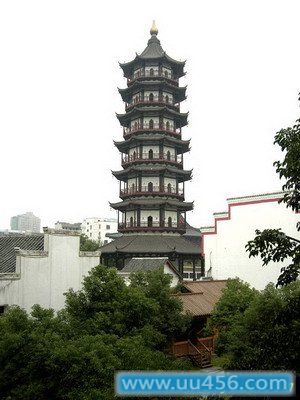 绳金塔位于南昌市猪市街附近绳金塔街,始建于唐朝天佑年同(904-907年)。相传建塔时掘地得铁函一只,函内有金绳四匝,古钊三把,金瓶舍利三百个,因此取名绳金塔。塔顶是一只铜制镇火鼎。传说鼎上镶了一颗熠熠闪光的宝珠,后被人掠去。还传说绳金塔能镇火消灾,《绳金塔铭》有“水火既济,坐镇江城”之说。南昌民谣说,“藤断葫芹剪,塔圯豫章残”,绳金塔成了镇城之宝。