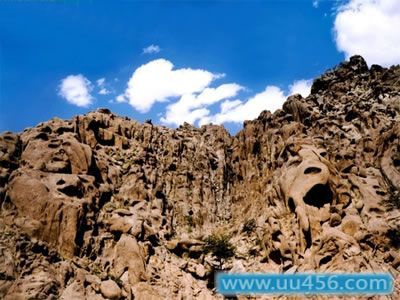 哈布茨盖怪石林地处阿左旗北部巴彦诺日公苏木西南20公里处的大漠中,“哈布茨盖”蒙语的意思是:山谷狭长,小溪流淌的怪石山。该山山体由红褐色的“诺尔红”大理石构成,方圆约四五十公里,山势不高,多条山谷横向排列,山中怪石嶙峋,奇趣盎然,大自然的鬼斧神工将山塑造成一处绝妙景观。裸露的巨大山体历尽数百年的风雨侵蚀、山洪冲刷,几经打磨,呈现出一种沧桑的壮美;来到山谷,山势陡峭,山峰拔地而起,山势各异,怪石嶙峋,随着山势的变化,山谷曲折,峰回路转,游历其中,随处皆景,仿佛走进了一个深不可测的神秘世界,令人充满无限遐想,更令人新奇万分,山谷中的怪石更是千姿百态,令人目不暇接,百看不厌;距此60公里的巴丹吉林沙漠边缘,坐落着一座有200年历史的古寺“夏日嘎寺”,寺旁数十座佛塔造型优美,寺旁湖泊中芦苇丛生,水鸟成群,景色宜人,是您休闲旅游的好去处。