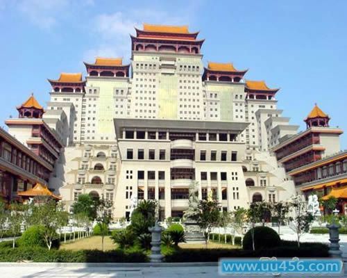云天宫建成于1998年,占地4.6公顷,广场面积1.7万平方米,主体楼21层,高108米。共有房间1100多间。牌楼、单体结构、华表高度谓全国之最;精雕麒麟、凤凰、景泰蓝工艺五龙托葫芦等高大居世界之冠;壁雕飞龙,精雕细琢堪称世界一绝;56个民族文化文物总汇一处创全国先河。整体建筑雄伟壮观,气势磅礴。
