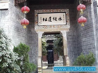 水镜庄又称白马洞。在南漳县城南门外1公里。背倚玉溪山,层峦叠翠,下临彝水,泉流淙淙。山腰峭壁处有一天然石室,名白马洞,上刻“洞天福地”四字。洞深约20米,宽10米,高4米以上。相传东汉末年司马徽隐居于此,自号水镜。洞外建有水镜庄门楼,为条石砌成,门两旁刻“彝水环绕,明镜高悬”对联,字迹苍劲有力。门内洞口有“水镜祠”,为两层楼阁建筑,依山傍洞,造型别致。右侧头天门和二天门上,均有箭楼耸立,两门之间凿石阶60级,从二天门至洞口,依山凿成百步横道,环山筑城墙,临崖壁立,堞垛相连,地势险峻。庄前有“汉水镜栖隐处”石碑一通,为清乾隆七年(1742年)所立。
