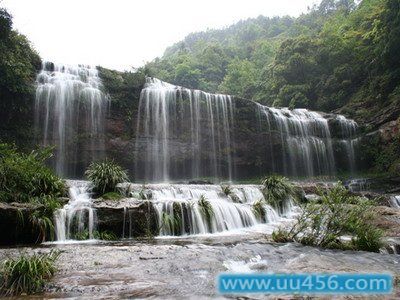 4、四周悬崖绝壁、神秘莫测的环岩胜景,有胜似庐山瀑布的龙马潭瀑布,有流往贵州的环岩深壑幽溪,雾绕狮子山、日出驼峰等景观使人流连忘返;