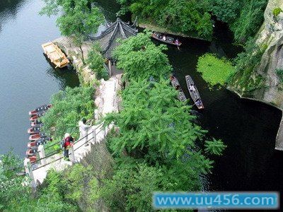 在绍兴城东绕门山麓,由山与水两部分组成,南面是东西绵延三四里长的箬箦山,相传秦始皇东巡,曾在此供草牧马而名,人们俗称绕门山。此山原是青石山,汉代后成了石料场,经千百年凿穿斧削,形成了高达五十余来的悬岩峭壁和变化万状的巨形岩画。深处又有长约二百米、宽约八十米,似乎深不可测的水塘。
