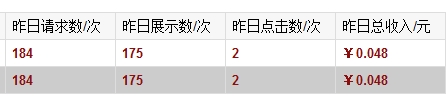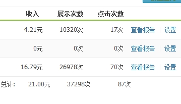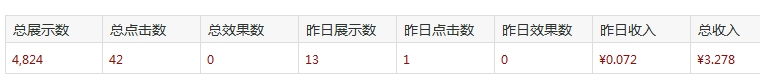 第三个选择,点击单价有0.24,每日收入也在0-3之间浮动,目前还在使用中,单次点击价格虽高,但是点击率却比有米低不少。