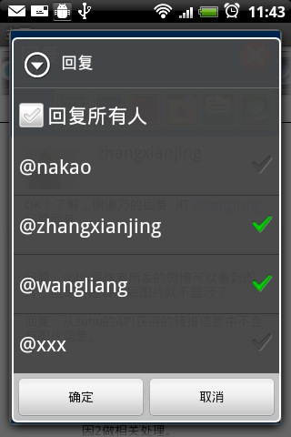 ★ 优化Twitter、Follow5、Crowdroid for Business的回复(Re)功能