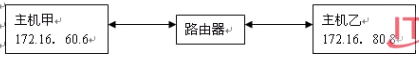 如下图,现在这么一个网络。主机甲与主机乙分别在两个不同的网段上,中间通过路由器进行连接。现在假设主机甲要跟主机乙进行通信,那么主机甲如何才能够找到主机乙的位置呢?笔者现在就通过这个例子,跟大家详细解释IP路由选择的整个过程。在这里,笔者以Cisco的路由器为例进行介绍。