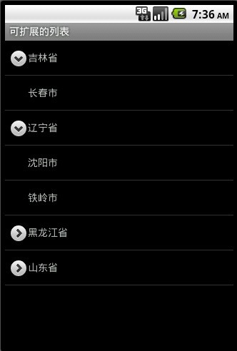 package com.zhou.activity;import android.app.ExpandableListActivity;import android.os.Bundle;import android.view.ContextMenu;import android.view.Gravity;import android.view.MenuItem;import android.view.View;import android.view.ViewGroup;import android.view.ContextMenu.ContextMenuInfo;import android.widget.AbsListView;import android.widget.BaseExpandableListAdapter;import android.widget.ExpandableListAdapter;import android.widget.ExpandableListView;import android.widget.TextView;import android.widget.Toast;import android.widget.ExpandableListView.ExpandableListContextMenuInfo;public class ExpandableList extends ExpandableListActivity {//声明adapterprivate ExpandableListAdapter mAdapter;@Overrideprotected void onCreate(Bundle savedInstanceState) {super.onCreate(savedInstanceState);//设这标题setTitle("可扩展的列表");//实例化adaptermAdapter = new MyExpandableListAdapter();//为列表设置adaptersetListAdapter(mAdapter);//为list注册context菜单registerForContextMenu(this.getExpandableListView());}@Overridepublic boolean onChildClick(ExpandableListView parent, View v,int groupPosition, int childPosition, long id) {Toast.makeText(this, " 组元素索引: " + groupPosition + " 子元素索引: " + childPosition, Toast.LENGTH_SHORT).show();return super.onChildClick(parent, v, groupPosition, childPosition, id);}@Overridepublic void onGroupExpand(int groupPosition) {Toast.makeText(this, " 组元素索引: " + groupPosition, Toast.LENGTH_SHORT).show();super.onGroupExpand(groupPosition);}@Overridepublic void onCreateContextMenu(ContextMenu menu, View v,ContextMenuInfo menuInfo) {menu.setHeaderTitle("上下文菜单");menu.add(0, 0, 0, "单击我");}// 单击上下文菜单后的逻辑@Overridepublic boolean onContextItemSelected(MenuItem item) {ExpandableListContextMenuInfo info = (ExpandableListContextMenuInfo) item.getMenuInfo();String title = ((TextView) info.targetView).getText().toString();int type = ExpandableListView.getPackedPositionType(info.packedPosition);if (type == ExpandableListView.PACKED_POSITION_TYPE_CHILD) {int groupPos = ExpandableListView.getPackedPositionGroup(info.packedPosition);int childPos = ExpandableListView.getPackedPositionChild(info.packedPosition);Toast.makeText(this, title + " 组元素索引: " + groupPos + " 子元素索引: " + childPos, Toast.LENGTH_SHORT).show();return true;} else if (type == ExpandableListView.PACKED_POSITION_TYPE_GROUP) {int groupPos = ExpandableListView.getPackedPositionGroup(info.packedPosition);Toast.makeText(this, title + " 组元素索引: " + groupPos, Toast.LENGTH_SHORT).show();return true;}return false;}//自定义Adapterpublic class MyExpandableListAdapter extends BaseExpandableListAdapter {// 父列表数据private String[] groups = { "吉林省", "辽宁省", "黑龙江省","山东省" };// 子列表数据private String[][] children = {{ "长春市" },{ "沈阳市", "铁岭市" },{ "哈尔滨市", "齐齐哈尔市", "牡丹江市" },{ "济南市", "青岛市", "淄博市", "潍坊市" }};@Overridepublic Object getChild(int groupPosition, int childPosition) {return children[groupPosition][childPosition];}@Overridepublic long getChildId(int groupPosition, int childPosition) {return childPosition;}@Overridepublic int getChildrenCount(int groupPosition) {return children[groupPosition].length;}// 取子列表中的某一项的 View@Overridepublic View getChildView(int groupPosition, int childPosition,boolean isLastChild, View convertView, ViewGroup parent) {TextView textView = getGenericView();textView.setText(getChild(groupPosition, childPosition).toString());return textView;}@Overridepublic Object getGroup(int groupPosition) {return groups[groupPosition];}@Overridepublic int getGroupCount() {return groups.length;}@Overridepublic long getGroupId(int groupPosition) {return groupPosition;}// 取父列表中的某一项的 View@Overridepublic View getGroupView(int groupPosition, boolean isExpanded,View convertView, ViewGroup parent) {TextView textView = getGenericView();textView.setText(getGroup(groupPosition).toString());return textView;}@Overridepublic boolean hasStableIds() {return true;}@Overridepublic boolean isChildSelectable(int groupPosition, int childPosition) {return true;}// 获取某一项的 View 的逻辑private TextView getGenericView() {AbsListView.LayoutParams lp = new AbsListView.LayoutParams(ViewGroup.LayoutParams.FILL_PARENT, 48);TextView textView = new TextView(ExpandableList.this);textView.setLayoutParams(lp);textView.setGravity(Gravity.CENTER_VERTICAL | Gravity.LEFT);textView.setPadding(32, 0, 0, 0);return textView;}}} 感谢分享